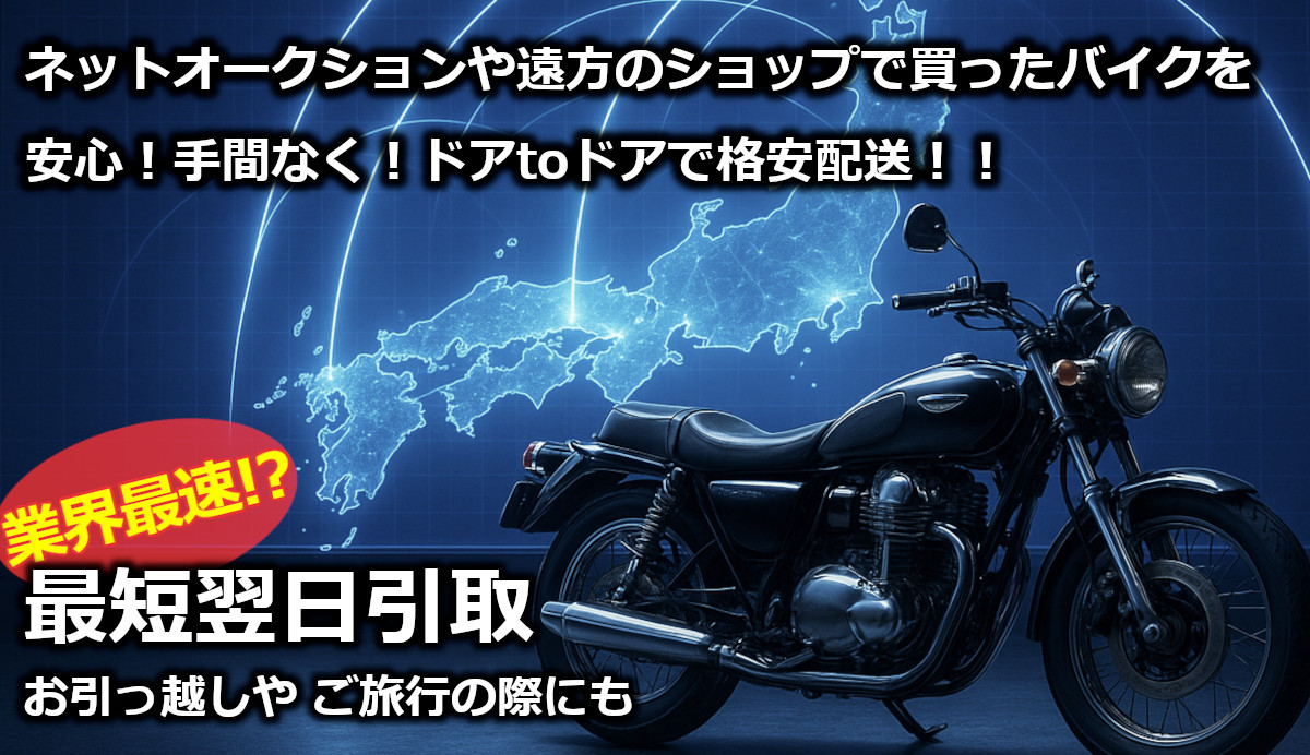 - 遠方のバイクショップや個人売買で購入したバイクを受け取りたい